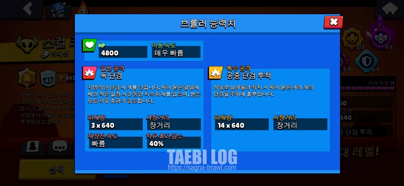 오늘은 제가 가장 좋아하는 브롤러 중 하나인 크로우에 대해 소개해 드리려고 합니다.