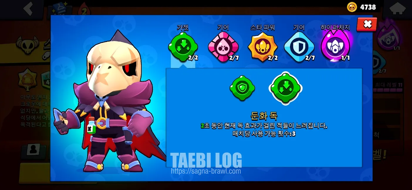 그렇지만 기어, 가젯과 더불어 하이퍼차지까지 등장하면서, 크로우는 HP가 낮은 이슈 외에는 모든 면에서 뛰어난 능력을 보이고, 엄청난 폭딜도 넣을 수 있는 브롤러가 되었습니다.