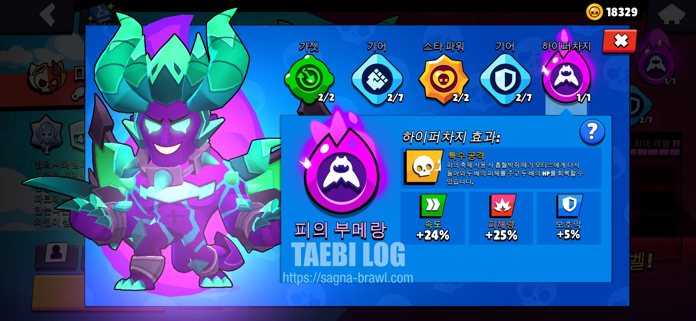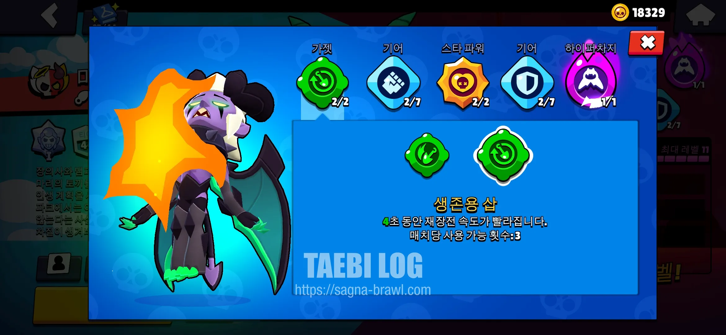 스타파워는 1번 영혼 사냥을 선택해줍니다. 적을 처치하면 HP의 20%를 회복하는 능력으로, 어쌔신 브롤러의 특성상 생존이 매우 중요하기 때문에, HP를 보충해 줄 수 있는 1번 스타파워가 상당히 유용합니다.