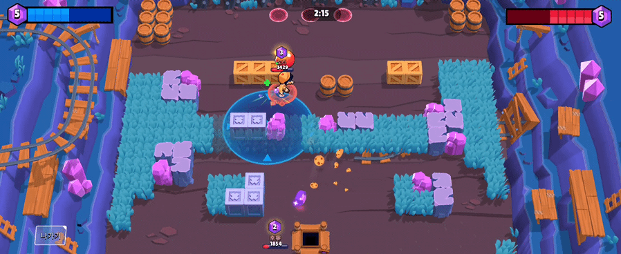 일반 공격을 마구 사용하다가 적 브롤러를 마주치면 아무것도 못하고 목숨을 헌납해야 합니다. 항상 적 브롤러가 어디 있는지 체크를 잘해서 공격을 할지, 도망갈지를 선택해야 합니다.