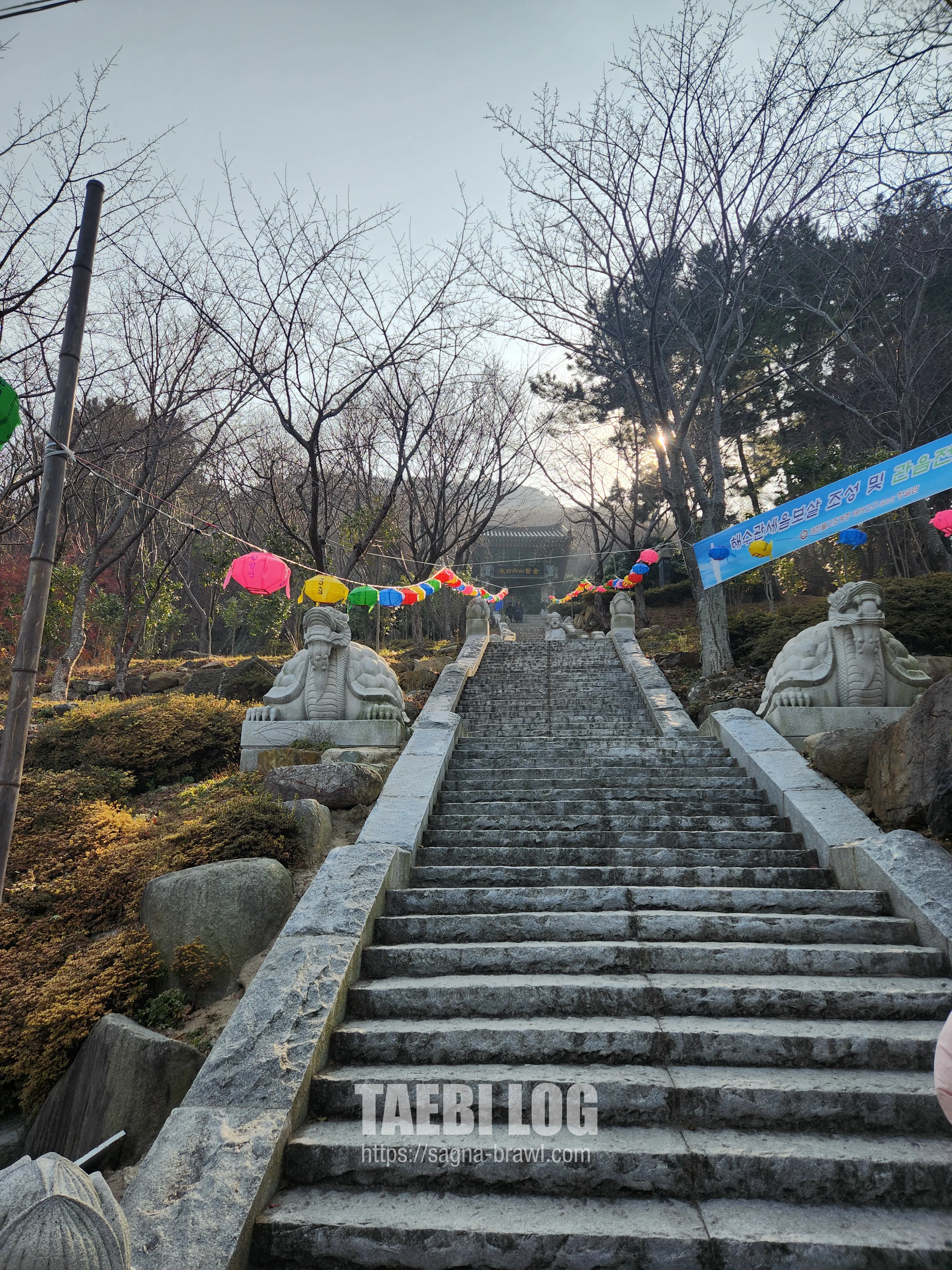 향일암에서 조금 더 위로 올라가면 해수관음전이 나옵니다. 일출 시간은 아니지만, 해수관음전에서 보는 일출이 굉장히 멋있다고 하기에 저도 올라가 보기로 하였습니다.