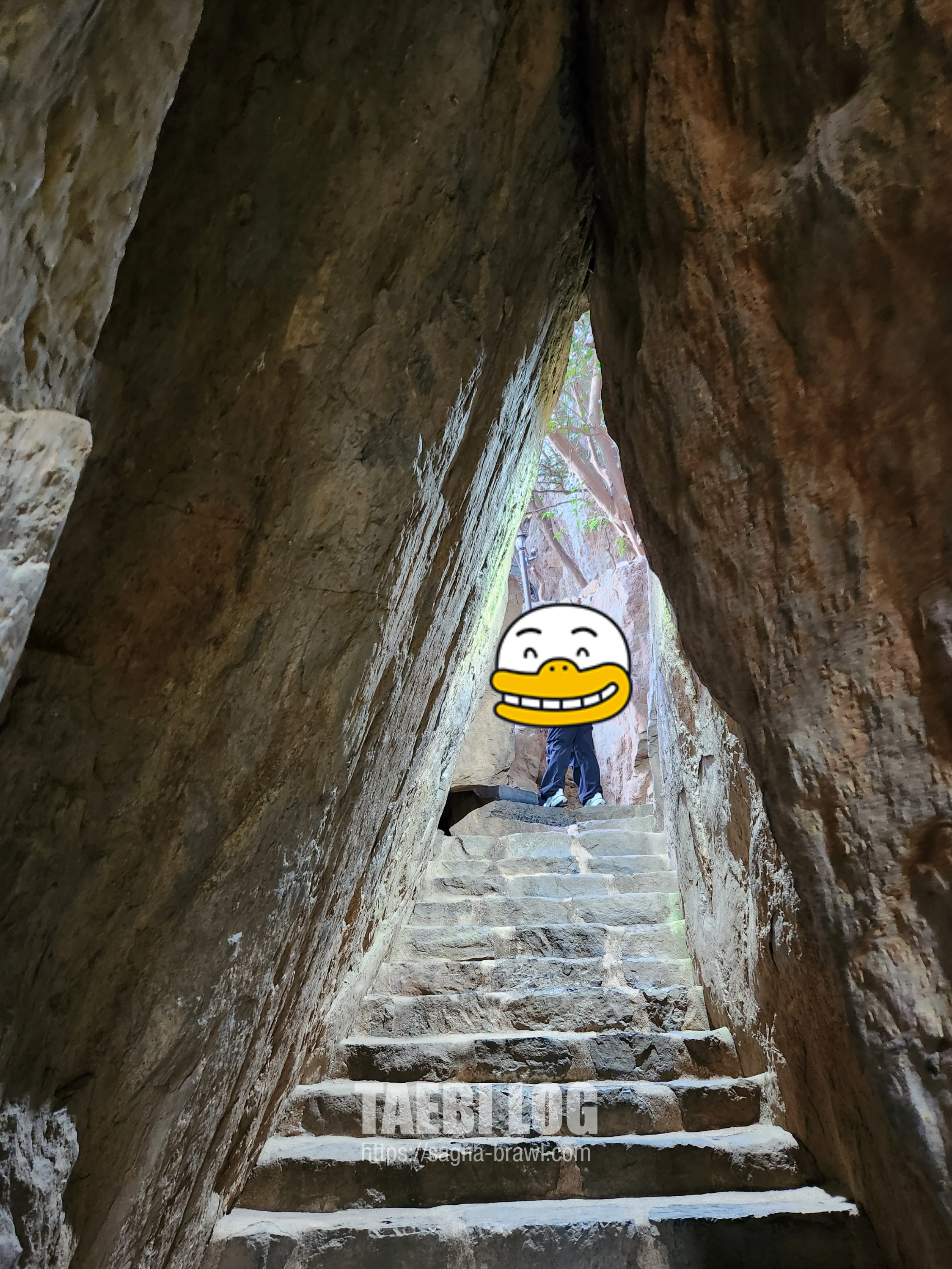 이런 계단을 올라가는데 겁먹을 필요가 없습니다. 눈에 보이는게 다가 아니라서(?), 그냥 포기하고 올라가면 됩니다. 그리고 계단은 올라가는 게 운동도 되고 좋습니다. 계단길로 내려오면 무릎도 상하고 몸에 좋지 않습니다. 계단길 평길 둘 다 이용해보고 싶다면, 올라가는 것을 계단길로 가는 것을 추천드립니다.