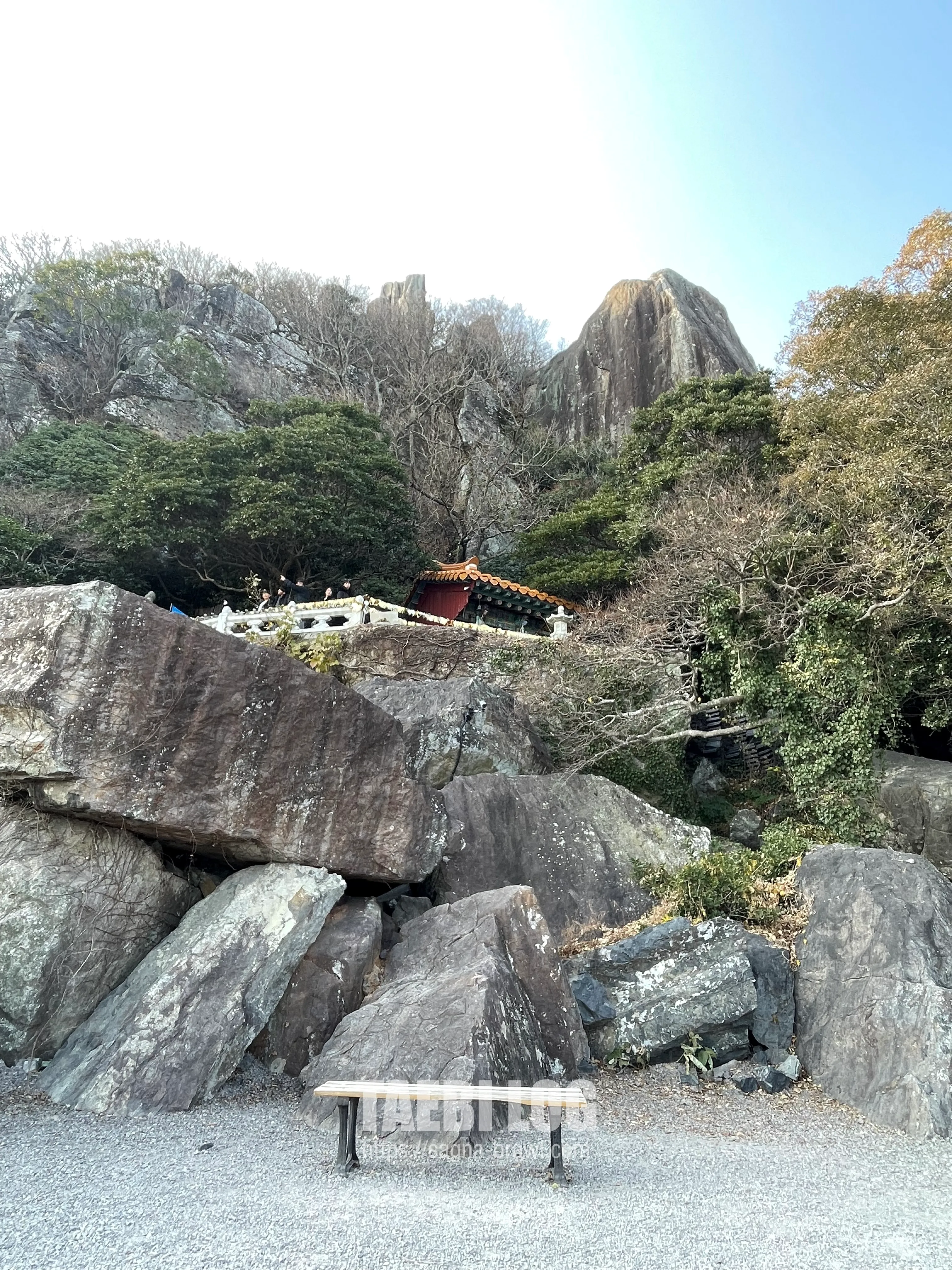 바위틈을 지나면 위쪽에 보이는 해수관음전이 나옵니다. 저 위에서 일출을 보면 그렇게나 멋지다고 하네요! 게으른 저는 불가능하지만, 부지런하신 분들은 꼭 도전해 보시길 추천드립니다.