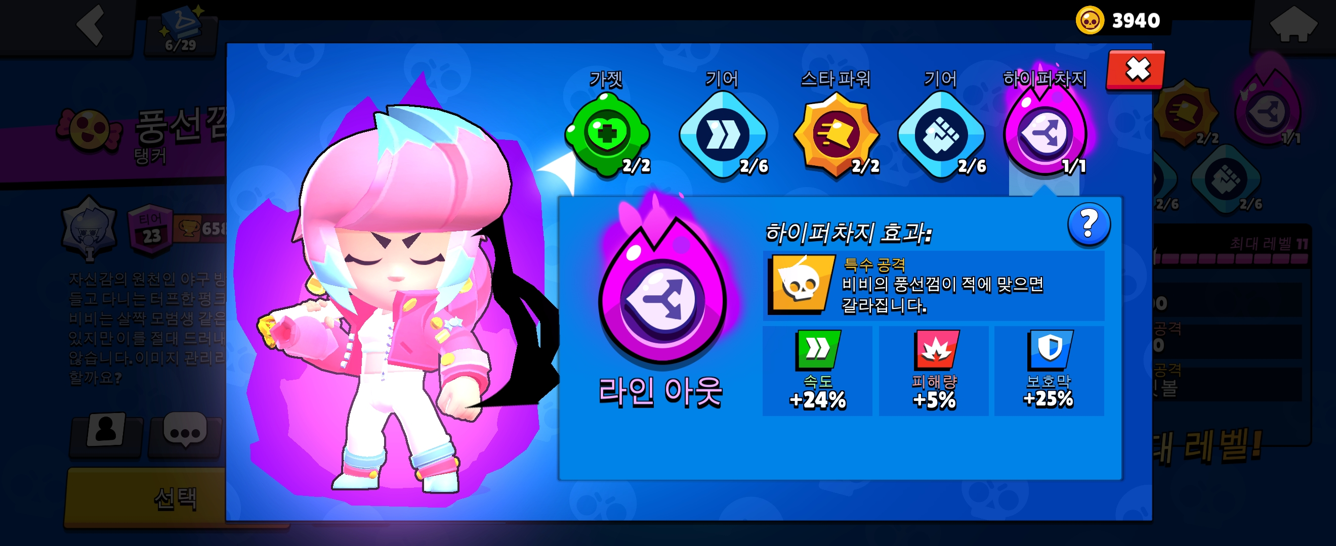 비비의 하이퍼차지는 상당히 좋다고 생각합니다. 비비의 특수 공격 충전이 매우 빠른 편이기 때문에, 하이퍼차지 후 특수공격을 두 번까지도 사용할 수 있습니다.