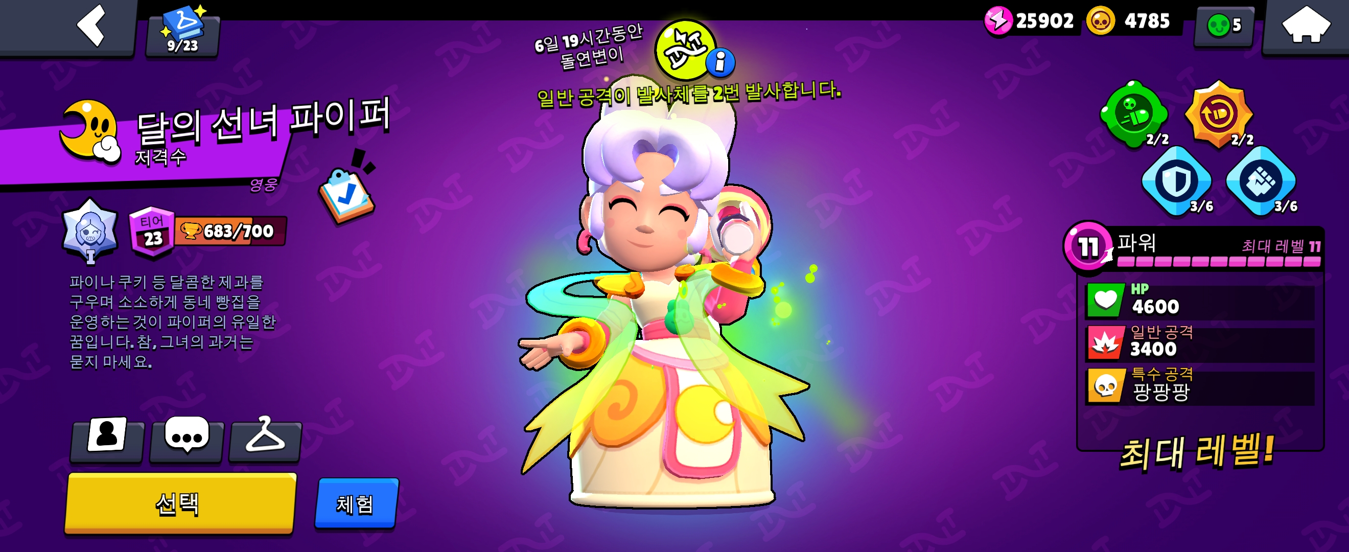 파이퍼는 1, 2번 가젯이 둘다 좋은 브롤러입니다. 1번 가젯인 자동 조준기도 상당히 많이 사용됩니다.