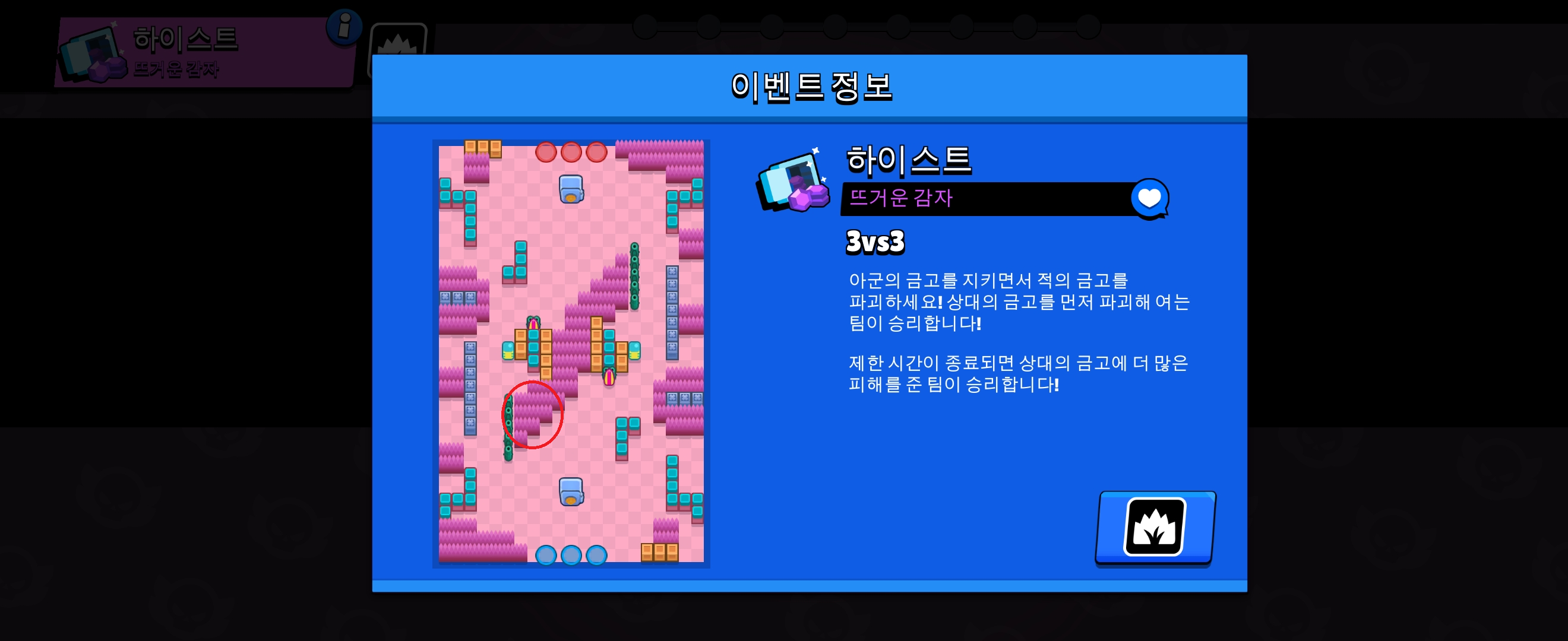 '하이스트'는 제가 제일 좋아하는 맵이고(이유 : 빨리 끝남), 맵 종류에 따라 사용하는 브롤러에 대한 이해도가 높은 편입니다. 그렇기 때문에 열심히 작성해 보겠습니다!!