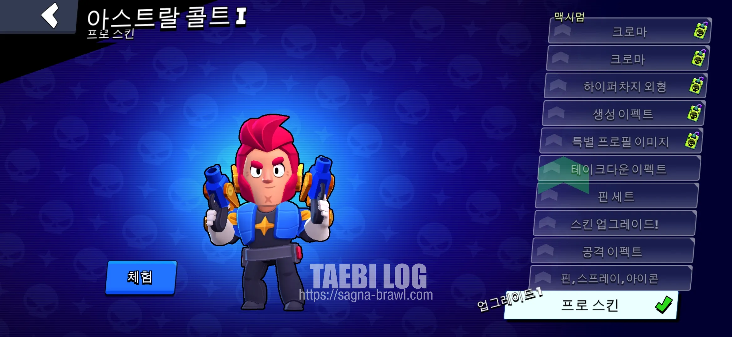 스킨에도 '프로'라는 등급이 생겼습니다. 출시 기념으로 콜트의 프로 스킨을 무료로 나눠주는데요. 프로 스킨은 아래와 같이 업그레이드할 수 있다고 합니다.