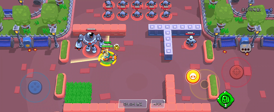 부채꼴 모양으로 발사되는 페인트볼을 3단계 상태에서 근접사용하여 대부분 명중시키면, 대미지가 24000이 넘게 들어갑니다. 모든 브롤러를 한방에 처리할 수 있다는 것입니다.
