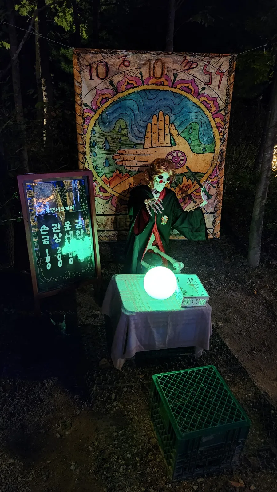 임시 선별 검사소를 지나면, 아래와 같이 2024 가을 시즌 특별기획 "오싹오싹! 신비한 유령마을" 현수막이 걸려 있습니다. 할로윈을 맞이하여 유령마을로 꾸며놓은 것으로, 임시 선별 검사소에서 해골들이 저희를 맞이해 준 것이 이해가 되었습니다.