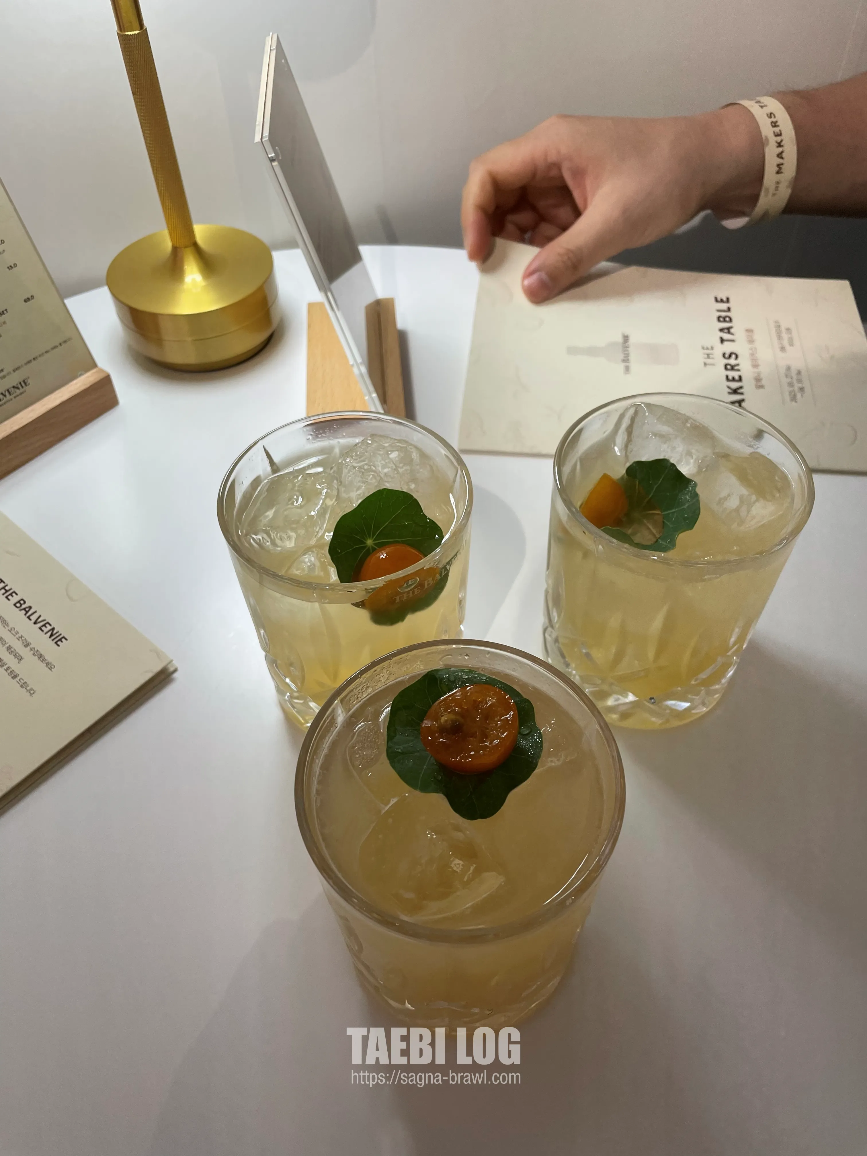 또 외부에는 정원이 있었는데 여기서 페어링 플라이트를 먹을수도 있었습니다. 왼쪽은 테이스팅 클래스를 진행하는 장소가 있었는데, 발베니 엠버서더가 직접 브랜드 철학부터 페어링까지 설명해 주는 코스가 진행되었습니다. 저는 테이스팅 클래스는 예약하지 않았으나, 저렴한 가격에 여러 가지 굿즈도 받을 수 있다고 하여 예약하지 않은 게 약간 후회가 되기도 하였습니다.
