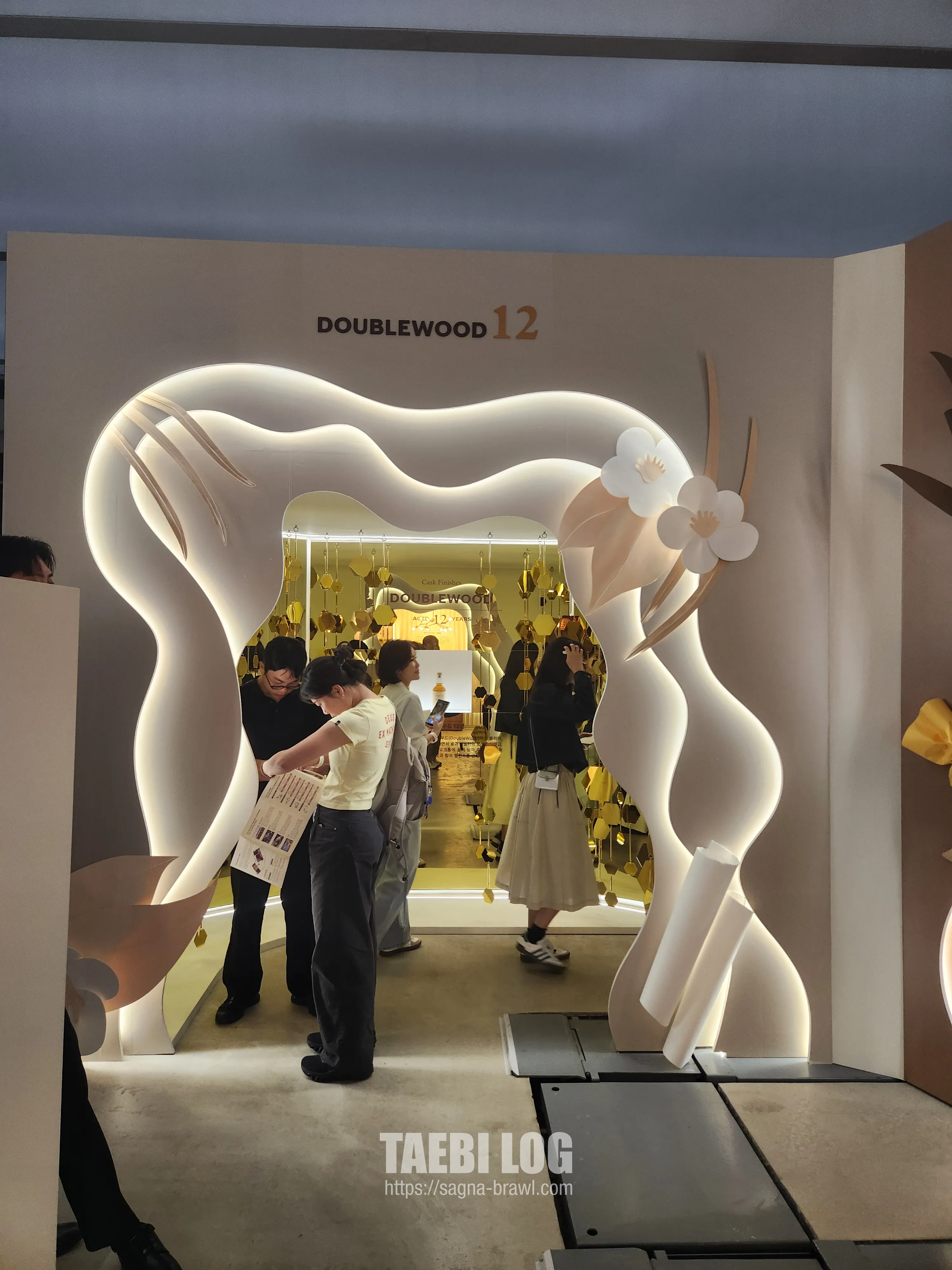 제일 먼저 나온 더블우드12 체험존입니다. 입구에 바로 붙어있었는데, 여기서 나오는 꿀과 바닐라가 섞인 위스키향이 입구까지 진하게 뿜어져 나오고 있었습니다. 사람이 많아 사진을 찍기는 꽤나 어려웠지만, 거울로 이뤄진 공간이 너무 맘에 들었습니다.