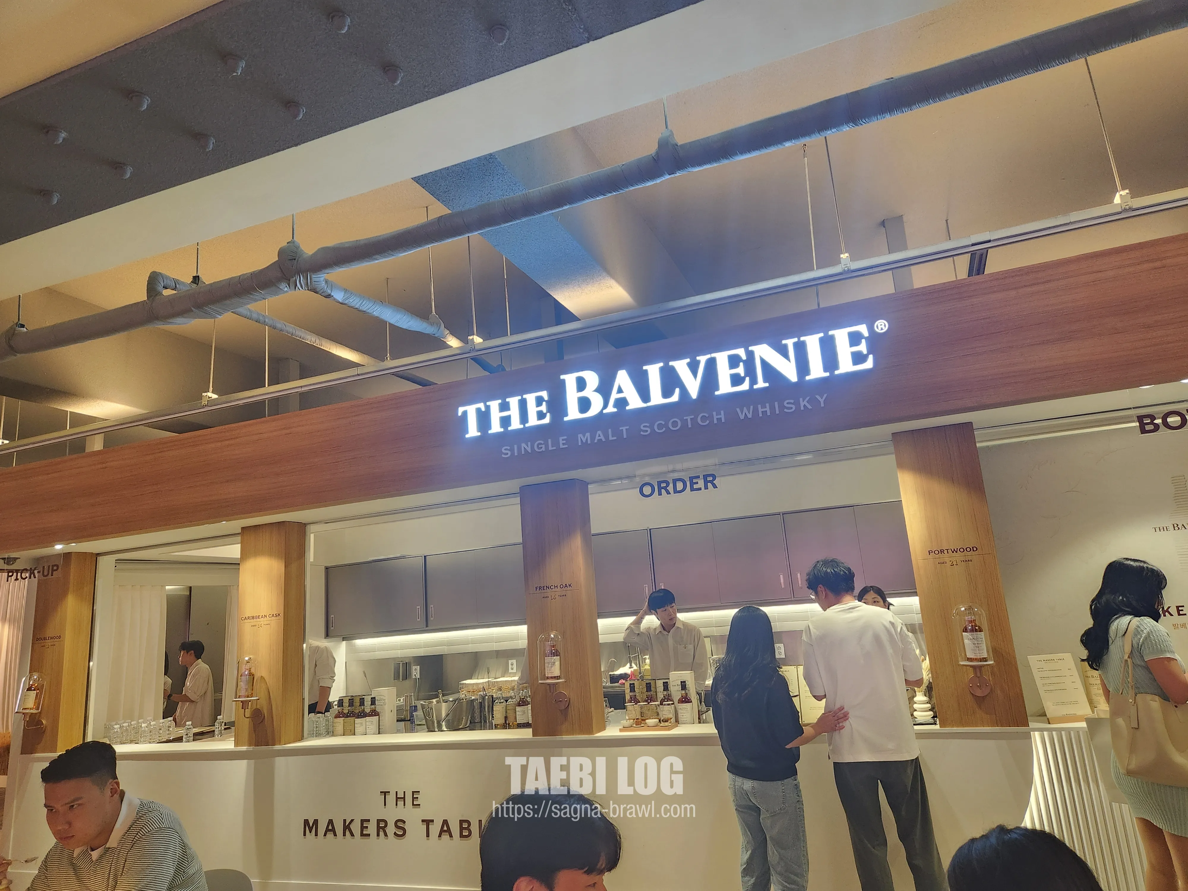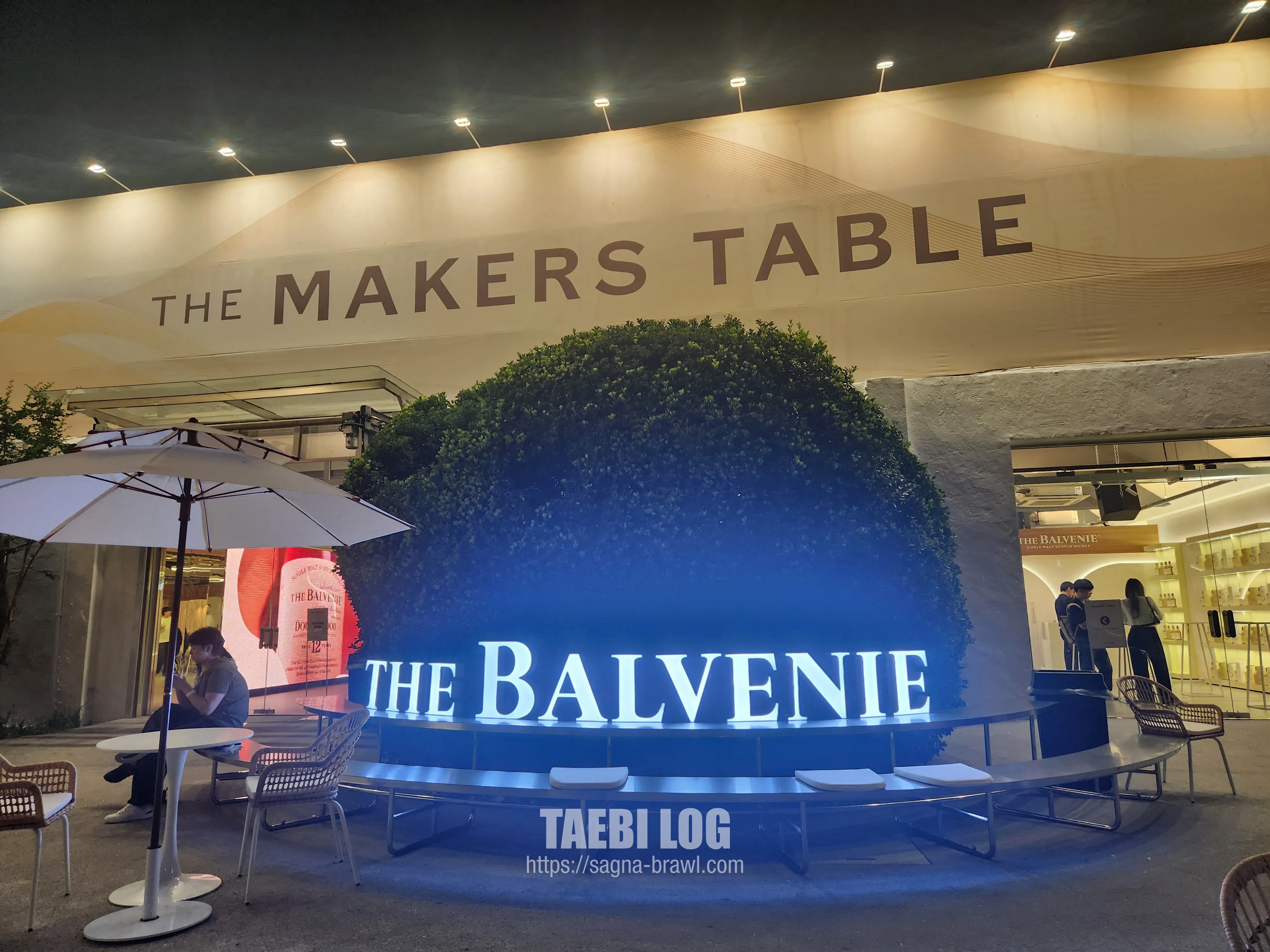 또 외부에는 정원이 있었는데 여기서 페어링 플라이트를 먹을수도 있었습니다. 왼쪽은 테이스팅 클래스를 진행하는 장소가 있었는데, 발베니 엠버서더가 직접 브랜드 철학부터 페어링까지 설명해 주는 코스가 진행되었습니다. 저는 테이스팅 클래스는 예약하지 않았으나, 저렴한 가격에 여러 가지 굿즈도 받을 수 있다고 하여 예약하지 않은 게 약간 후회가 되기도 하였습니다.