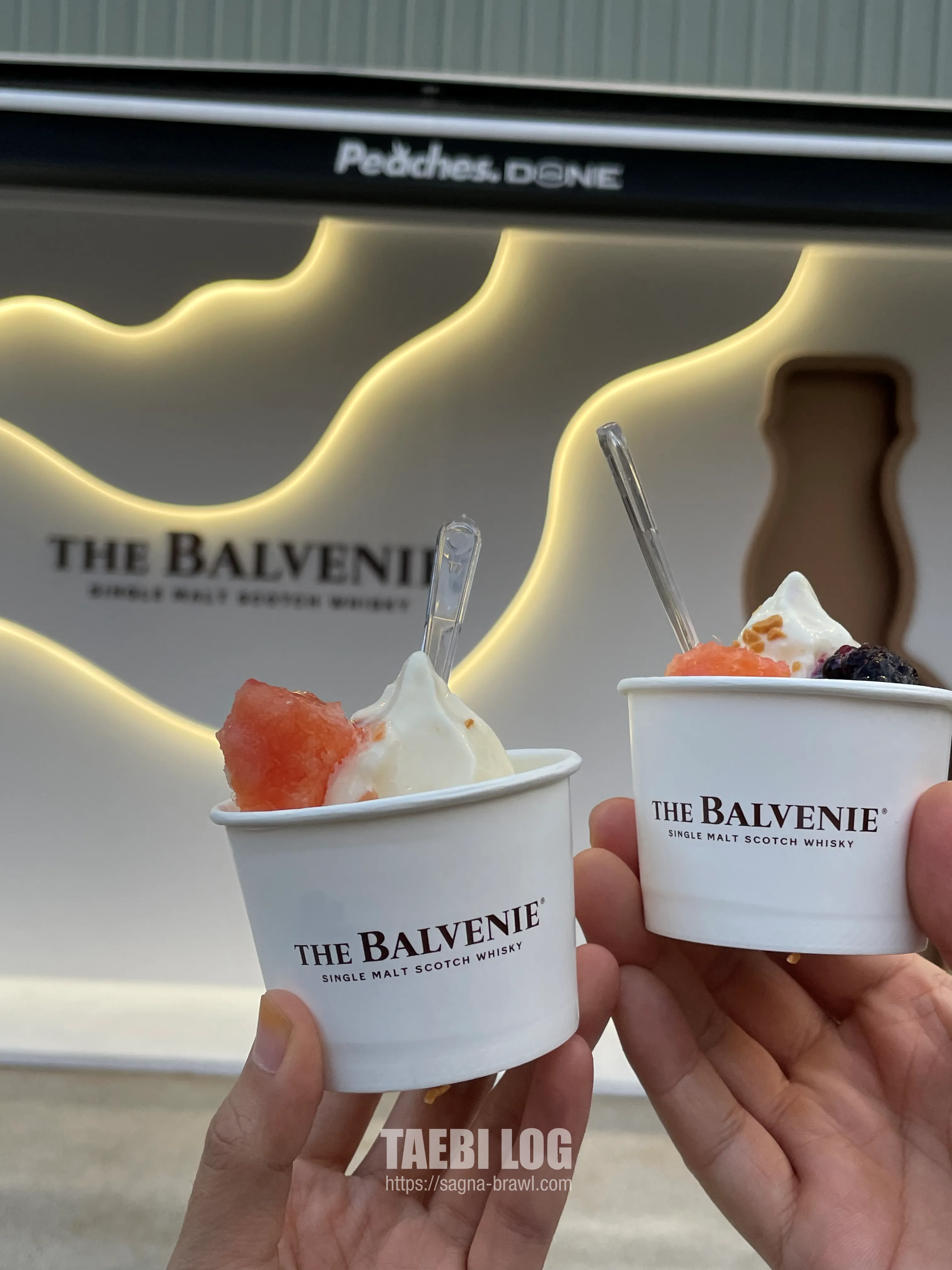 전시관에 숨겨진 발베니 캐스크들을 찾아 책자에 붙이면, 나만의 발베니 아이스크림을 만들어줍니다. 스페셜 토핑으로 발베니 더블우드 12를 선택하여 먹어봤는데, 너무 맛있었습니다.