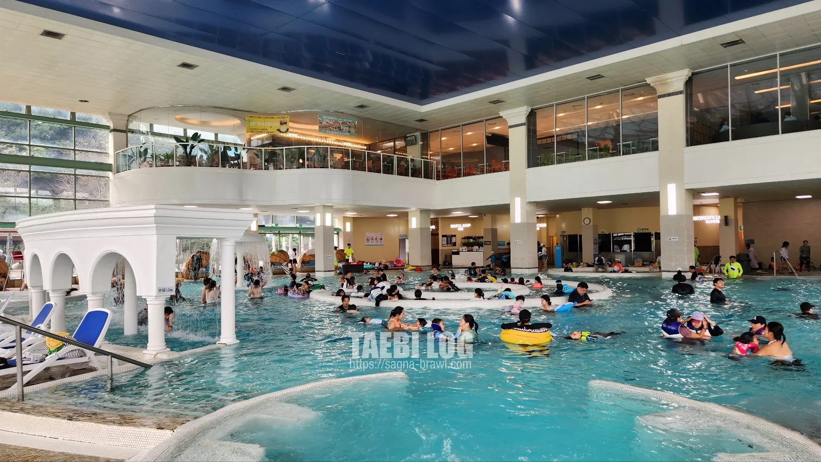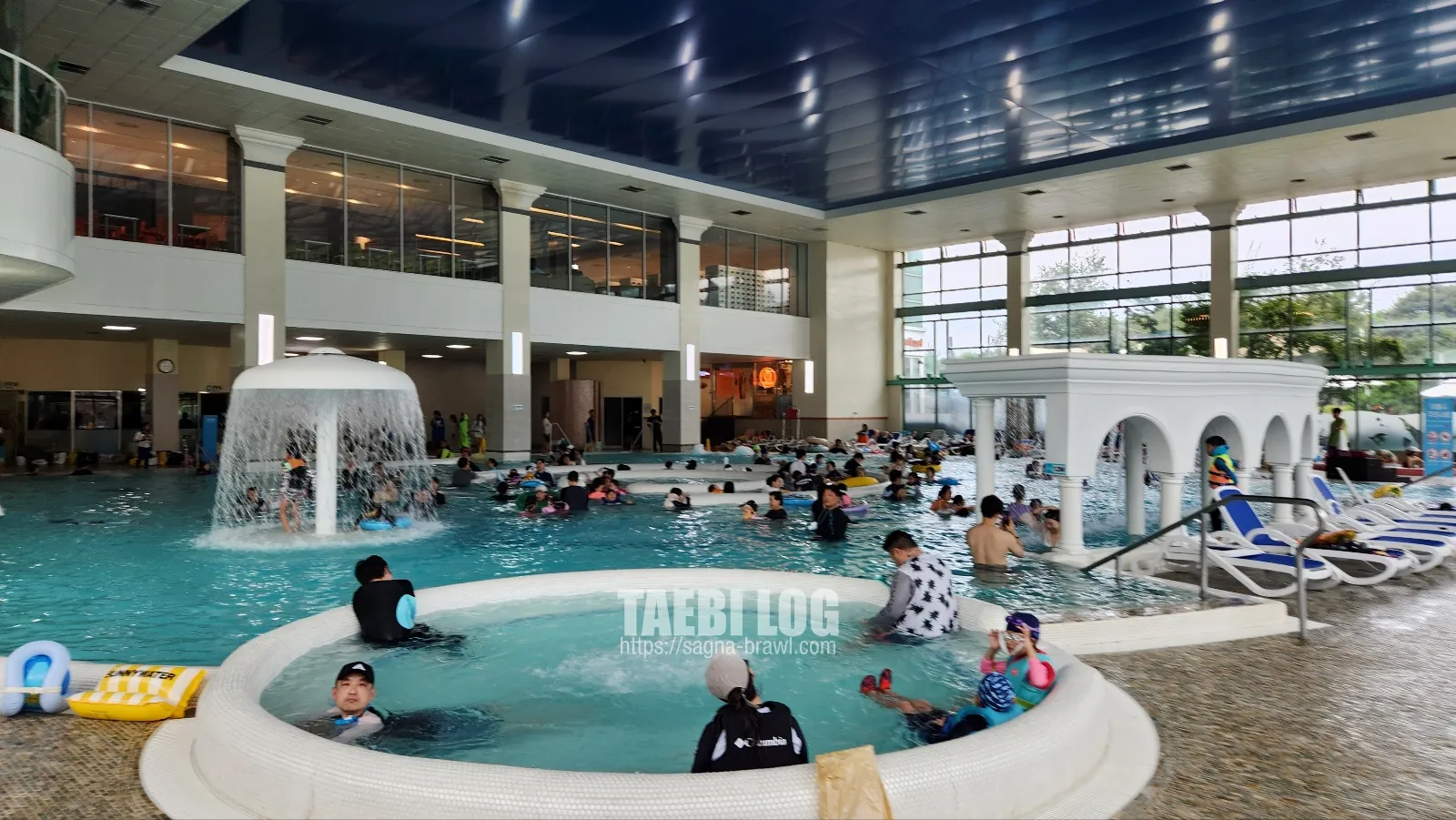 바데풀 옆에는 실내 온천풀이 곳곳에 있습니다. 메인 풀도 물이 따뜻하긴 하지만, 온천풀이 확실히 따뜻합니다. 그래서 날이 추울수록, 온천풀에 사람들이 많이 모여있습니다.