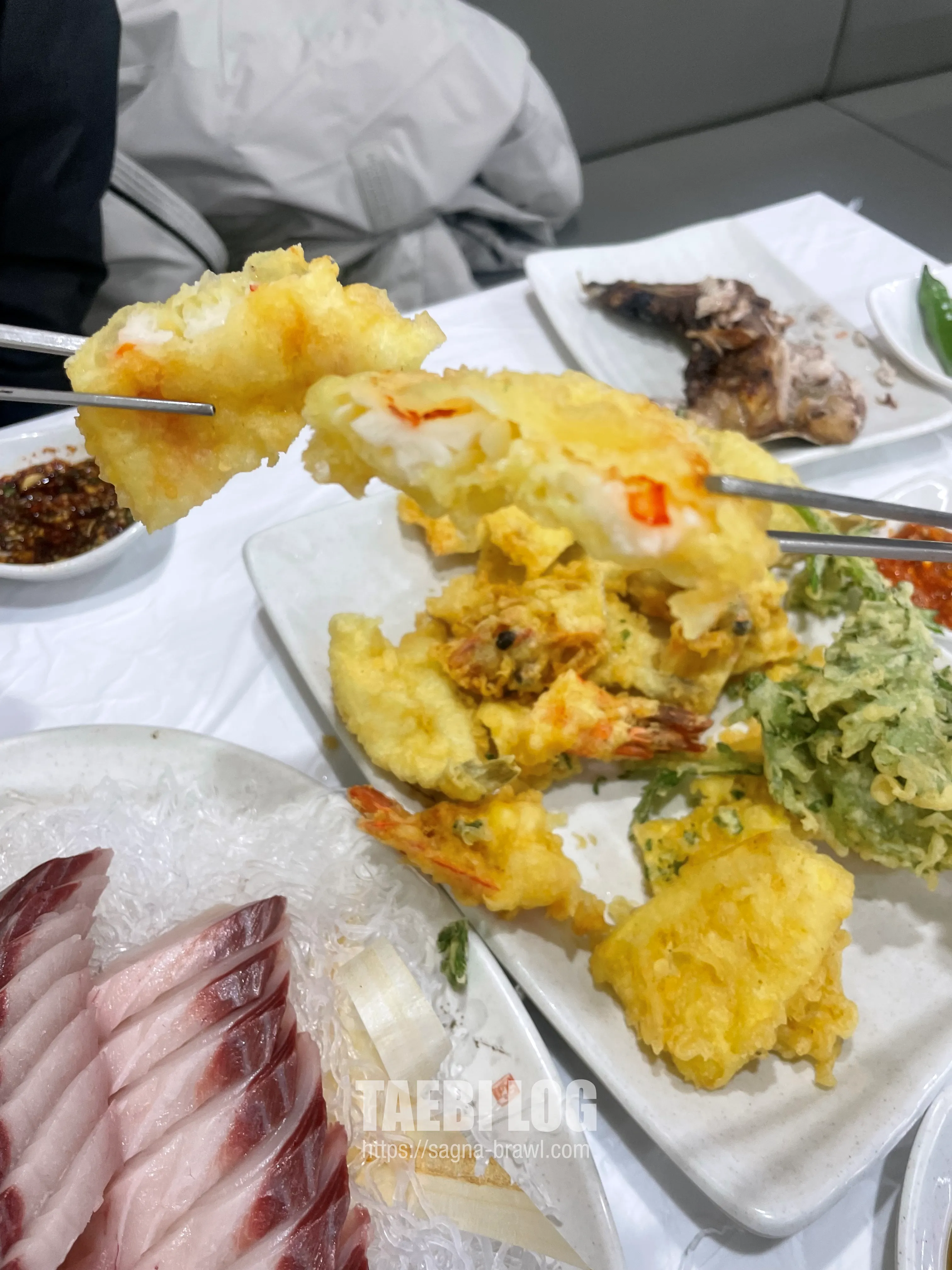 튀김도 엄청 바삭하고 맛있었습니다. 크기가 크길래 생선 튀김인 줄 알았는데 알고 보니 새우를 넓게 펴서 튀기셨더라고요 (물론 생선튀김도 있었습니다.) 다양한 야채튀김과 함께 알찬 구성이었습니다.