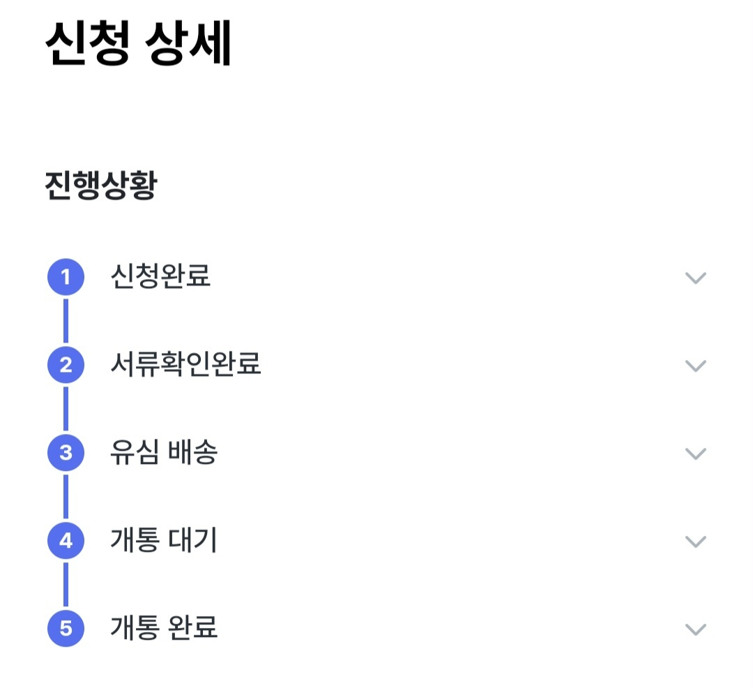 모요 앱에서 알뜰요금제를 신청 완료하면 위와 같은 개통 과정을 거치게 됩니다.