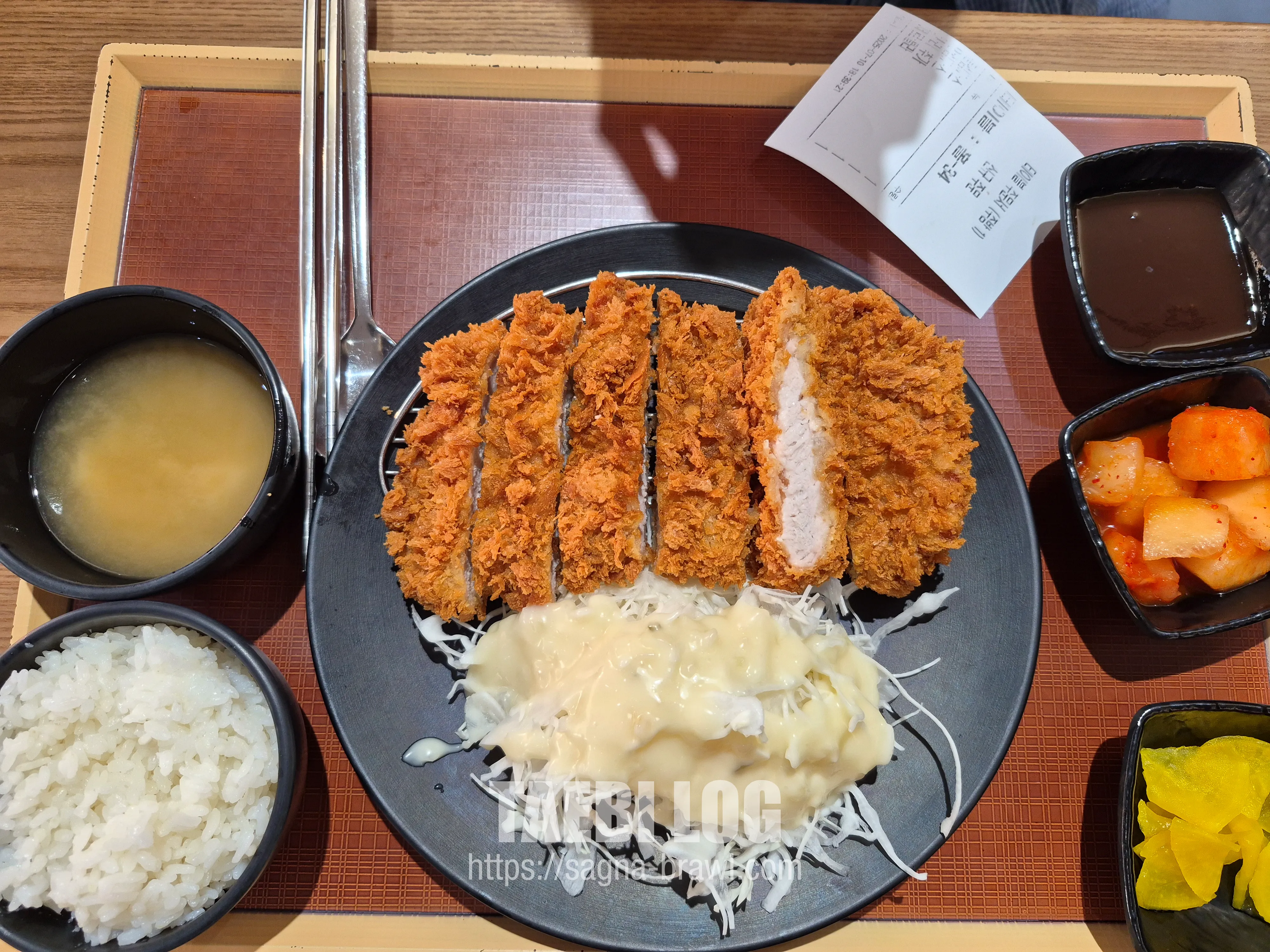 둘 다 상당히 맛있었는데, 개인적으로 안심까스가 더 맛있었습니다. 소금을 따로 받아올 수 있는데, 소금에 찍어먹으면 정말 극락의 맛입니다!