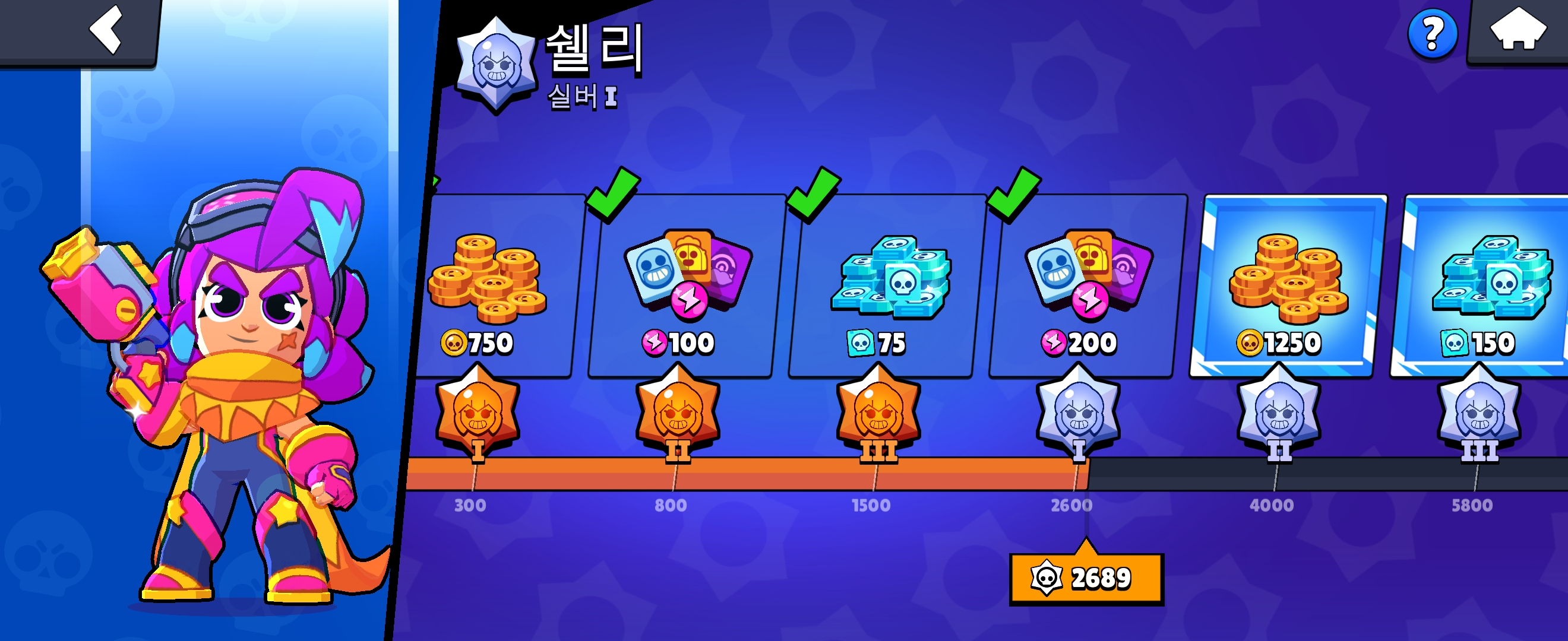 브롤러의 업그레이드에는 많은 코인이 필요하기 때문에, 가지고 있는 모든 캐릭터들을 최소 실버 Ⅱ 까지 진행해 준다면, 주력 브롤러들은 하이퍼차지까지 획득할 수 있을 것입니다.