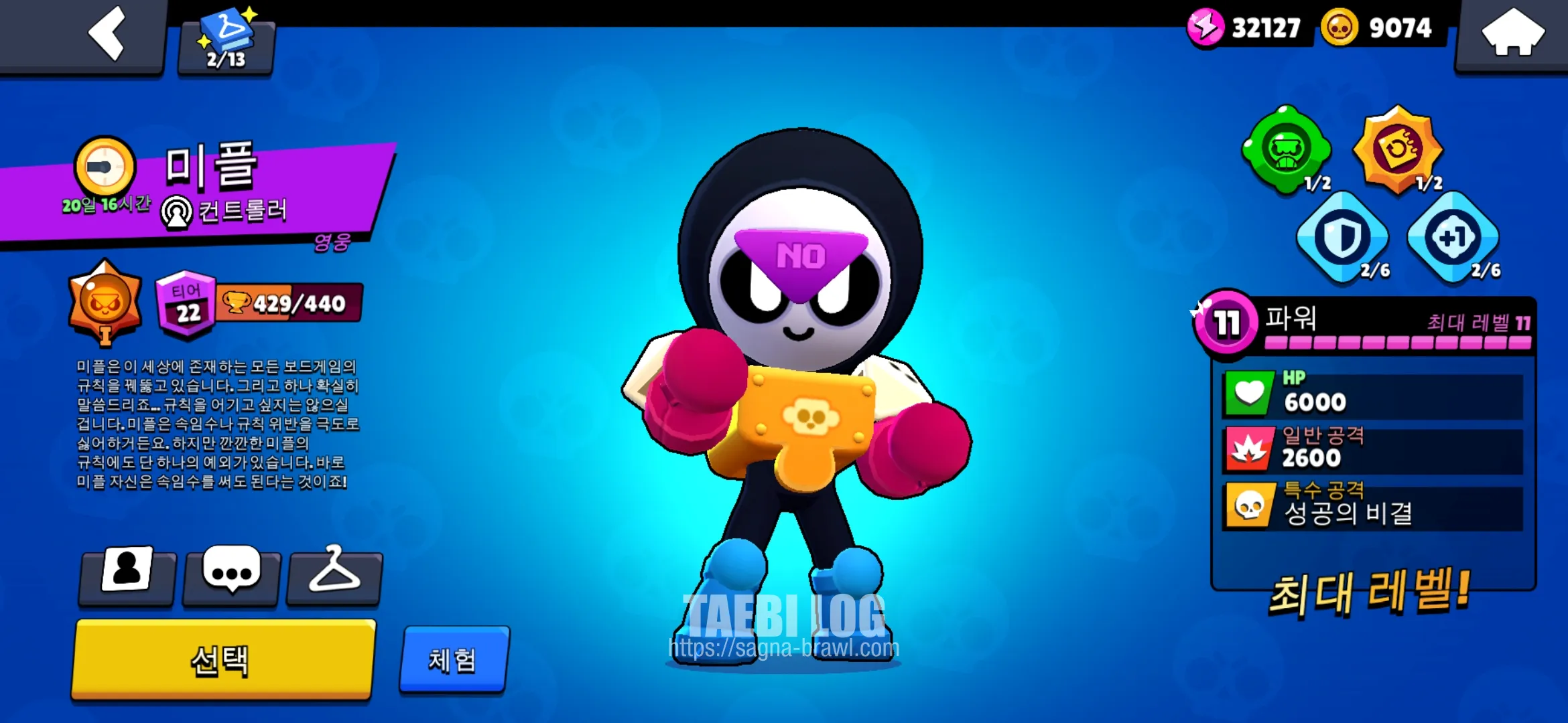 모두들 피자플래닛 이벤트를 진행하시느라 바쁘실 텐데요. 이번에 신규로 나온 브롤러 미플을 피자 상점에서 구매하고 사용해 보았습니다. 제가 최근에 나온 주주와 셰이드는 따로 분석을 진행하지 않았는데요. 좋긴 한데 뭔가 애매한(?) 사기까지는 아닌 것 같아서 넘어갔습니다. 그런데 이번에 나온 미플은 정말 사기 소리 들을만한 좋은 브롤러 인 것 같습니다.