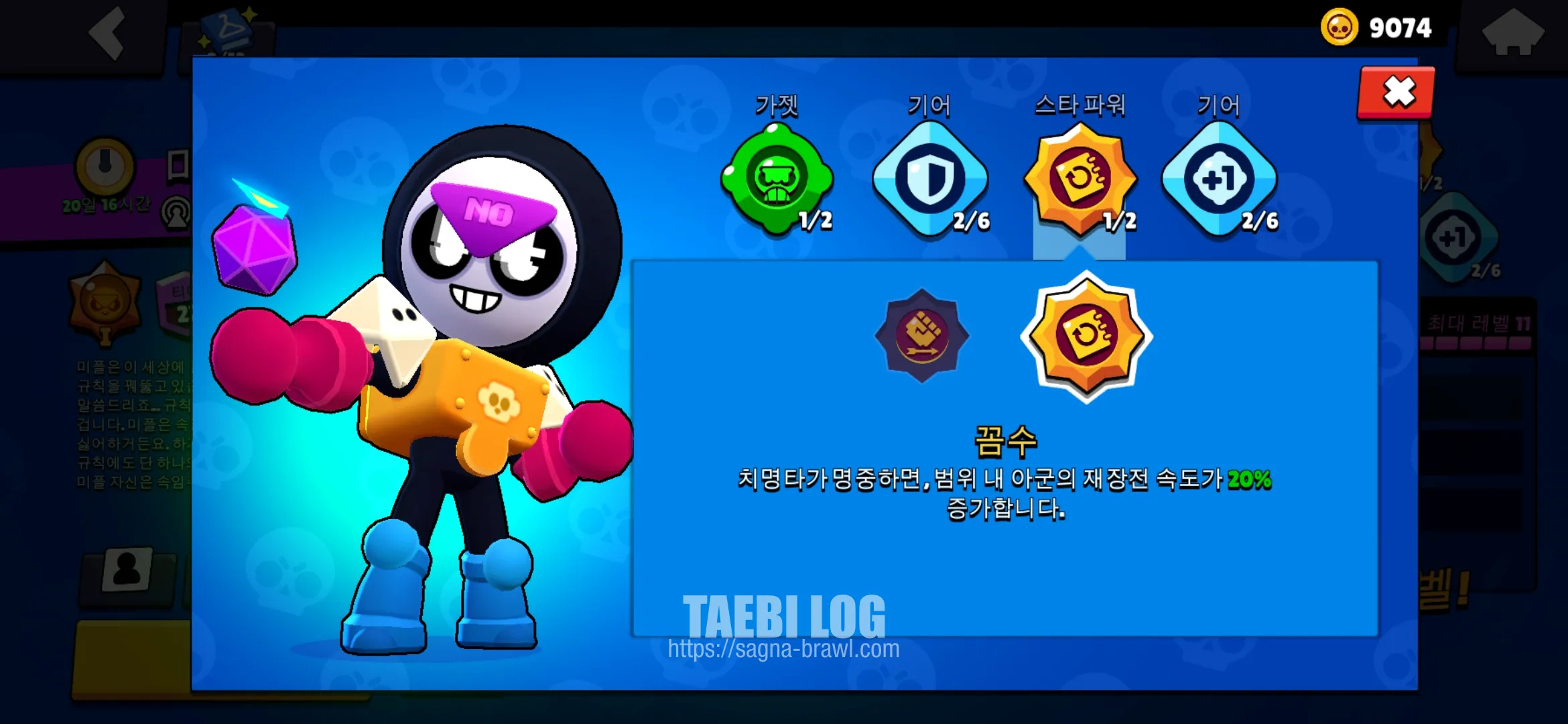 스타파워는 2번 꼼수를 사용합니다. 치명타가 명중하면, 범위 내 아군의 재장전 속도가 20% 증가하는데, 미플의 재장전 속도가 느리기 때문에 도움이 되는 스타파워입니다.