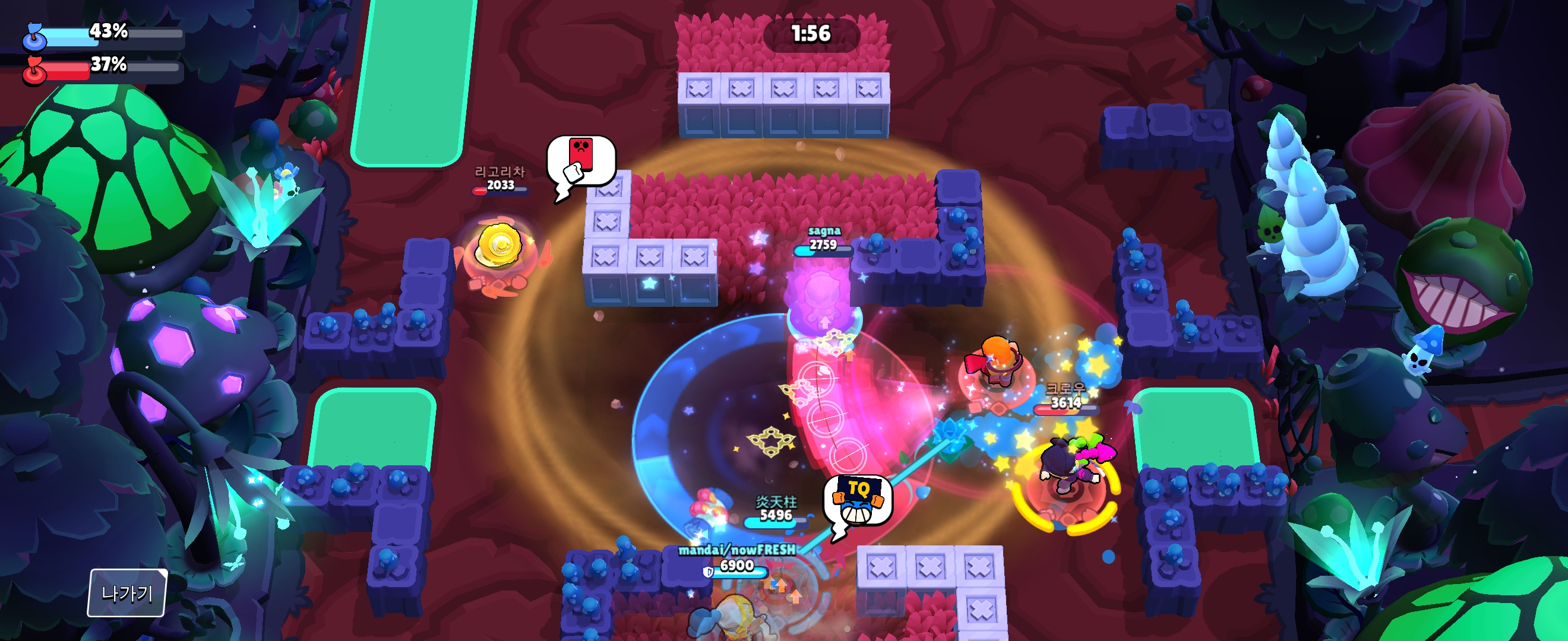 그리고 특수 공격이 충전되면, 특수 공격을 사용하면서 점령 범위 안에서 상대를 각개격파 하는 방식으로 사용해 줍니다.