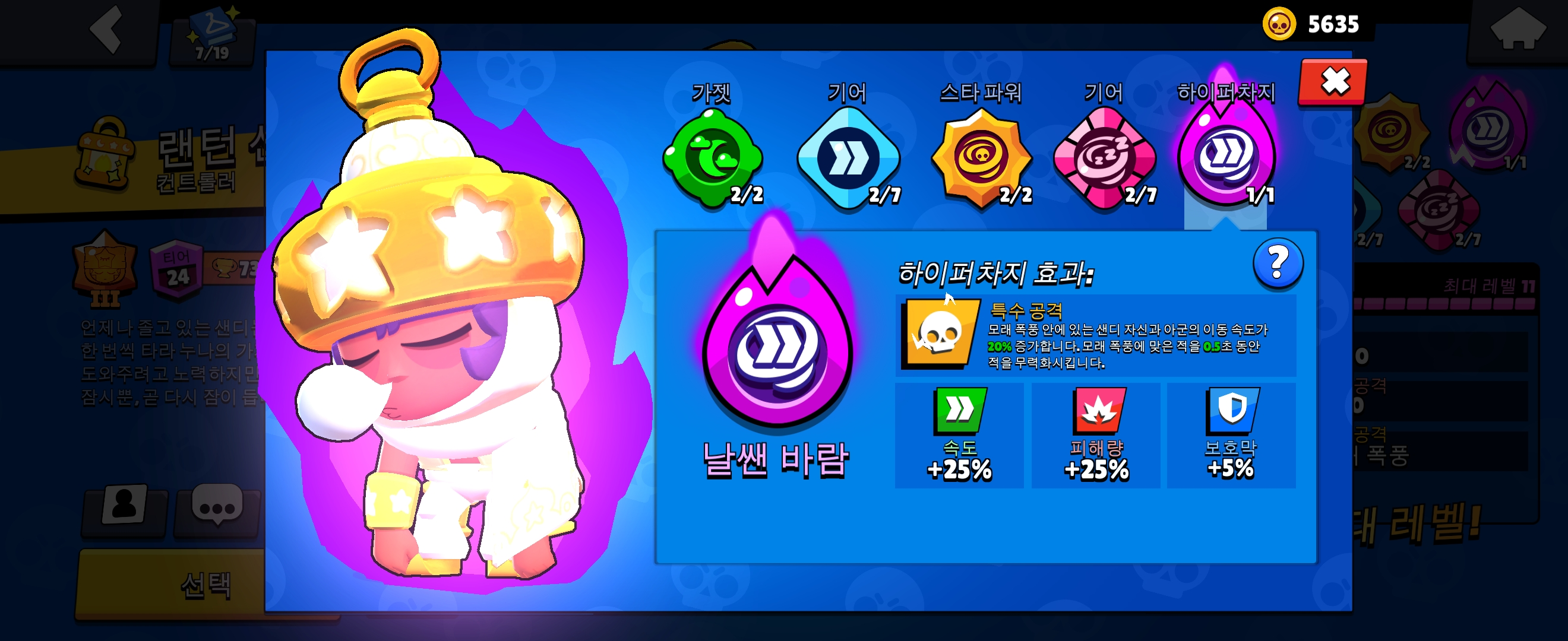 샌디는 2번 가젯(달콤한 꿈)이 좀 더 유용합니다. 상대 브롤러를 잠시 잠재움으로써 얻는 이득이 많습니다.