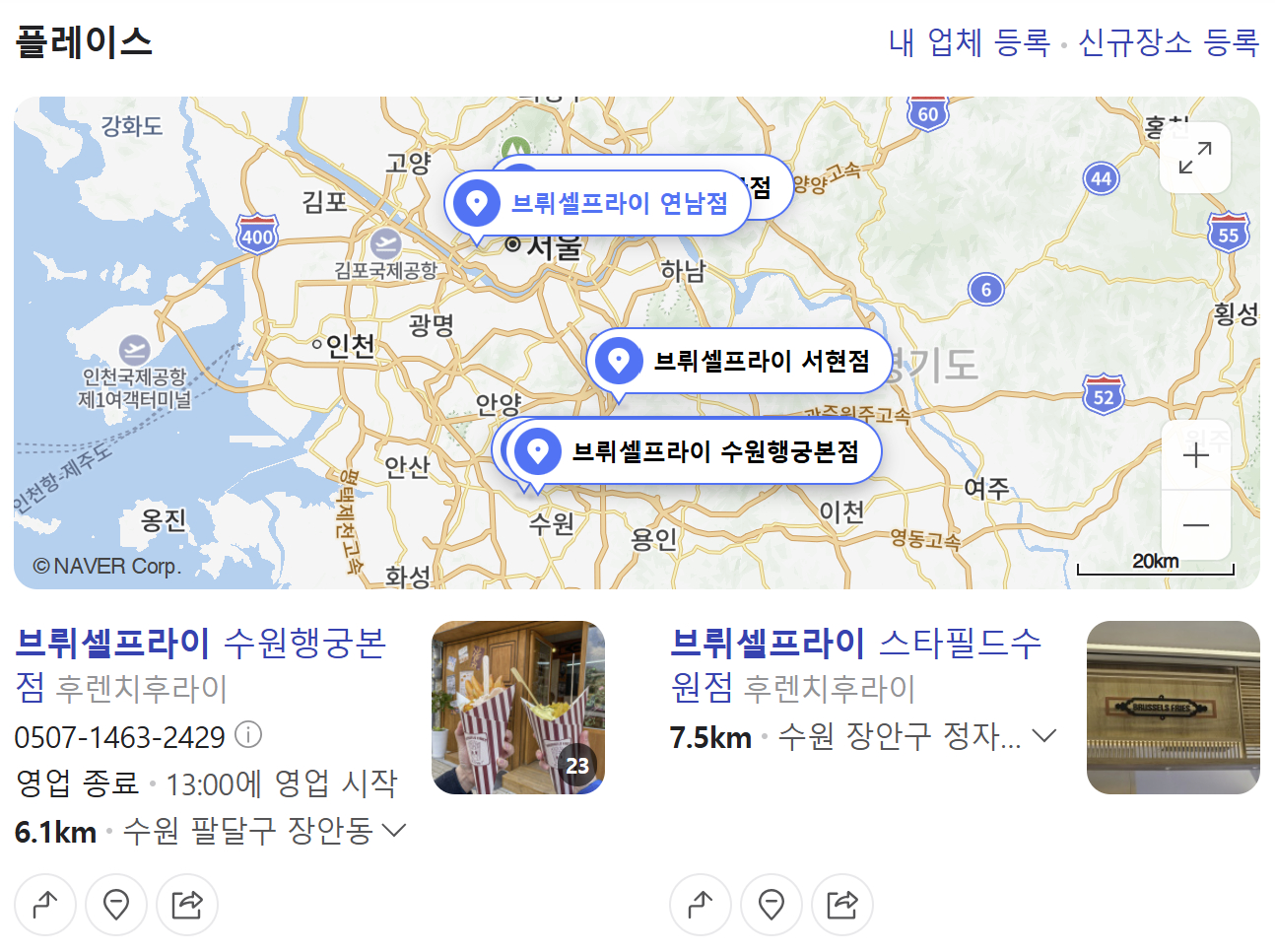 줄을 서며 네이버 검색을 해보니, 브뤼셀프라이는 가까운 수원 행궁점이 본점인 매장이었습니다. 행궁동에 맛집이 많은데, 본점 외에 많은 분점을 낸 것을 보니 굉장히 인기가 많은 가게라는 것을 알 수 있었고, 굉장히 기대가 되었습니다.
