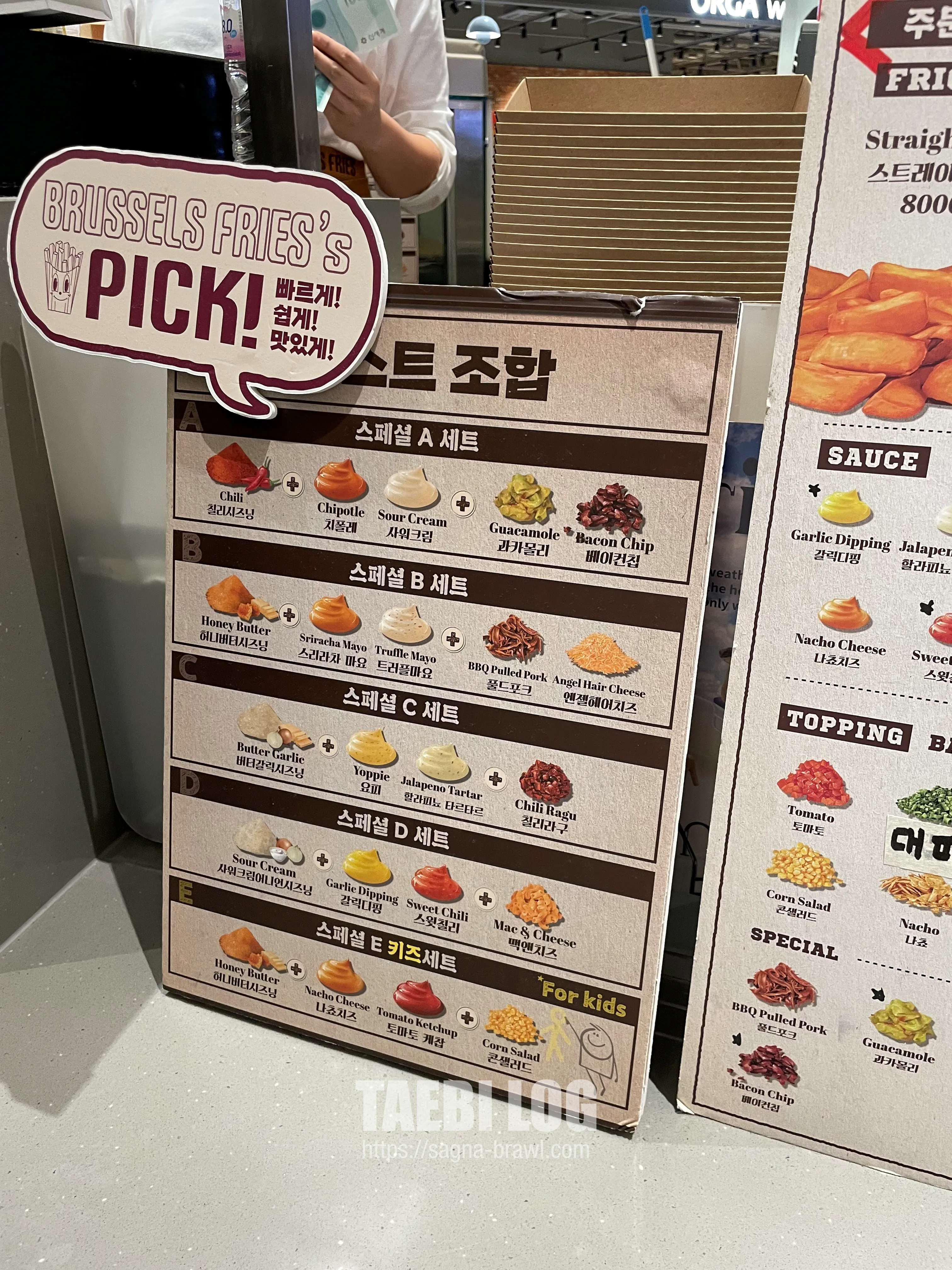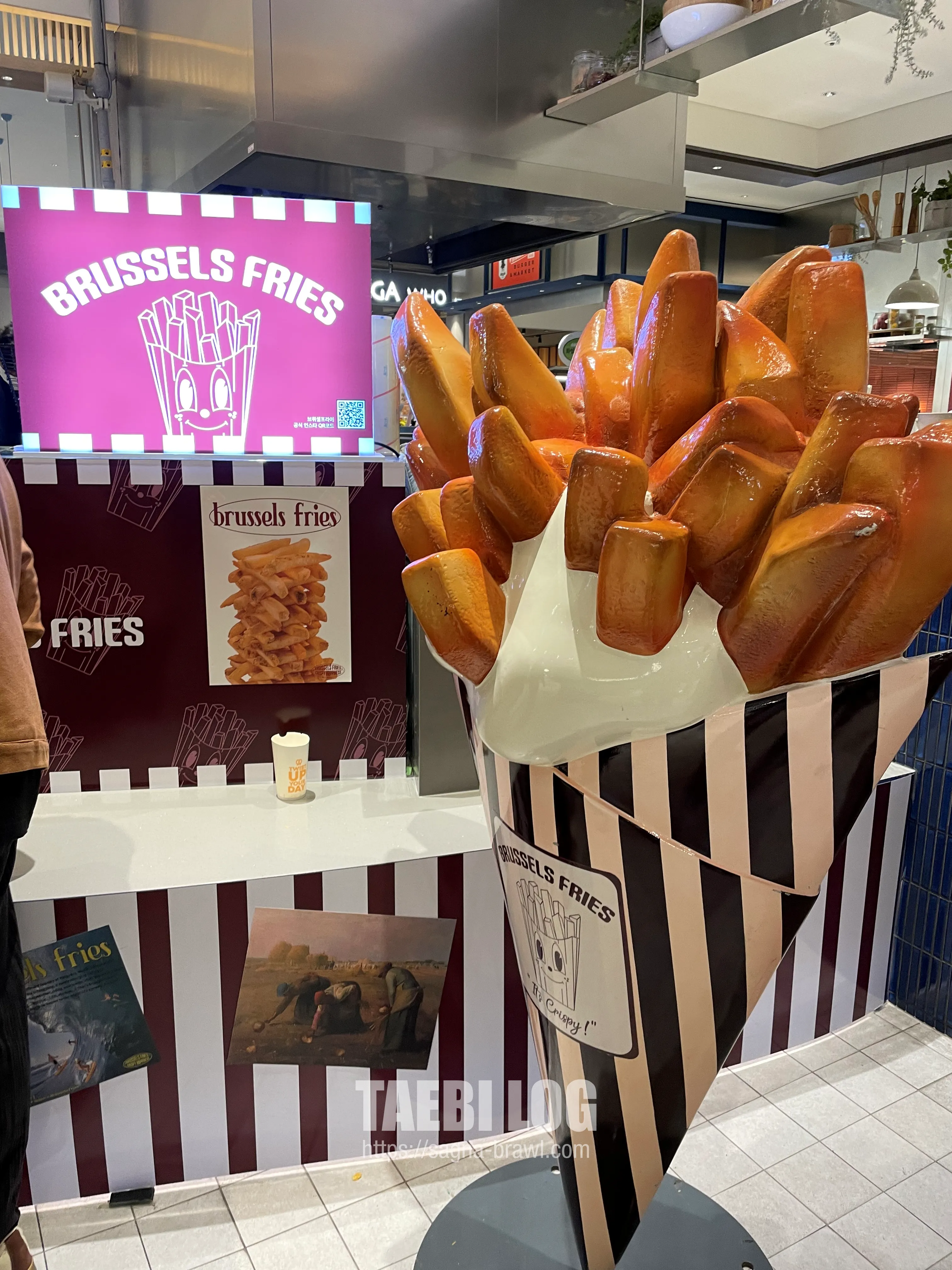 화서 스타필드에 방문할 계획이 있으신 분들은 1층에 가서 브뤼셀프라이를 간식으로 드시면 됩니다. '가격이 좀 비싼데요?'라고 하실 수 있습니다. 그러면 다른 가게를 한번 둘러보고 오면, 가격이 비싼 것이 아님을 알 수 있습니다. 늦은 시간에 가면 줄이 길지 않으니 더욱 빠르게 드실 수 있습니다.