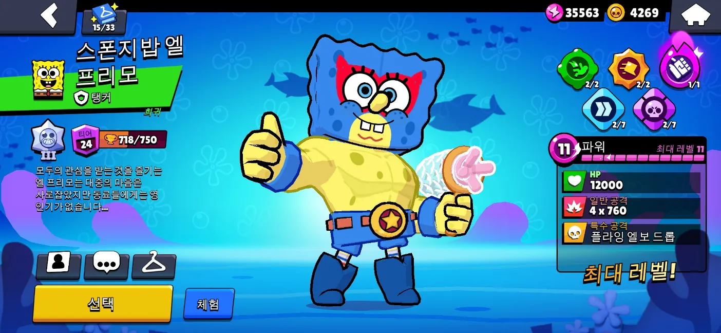 클럽 보상으로 받은 스펀지밥 엘프리모입니다. 스펀지밥이 좀 징그러운 느낌이라 썩 맘에 들지는 않았습니다.