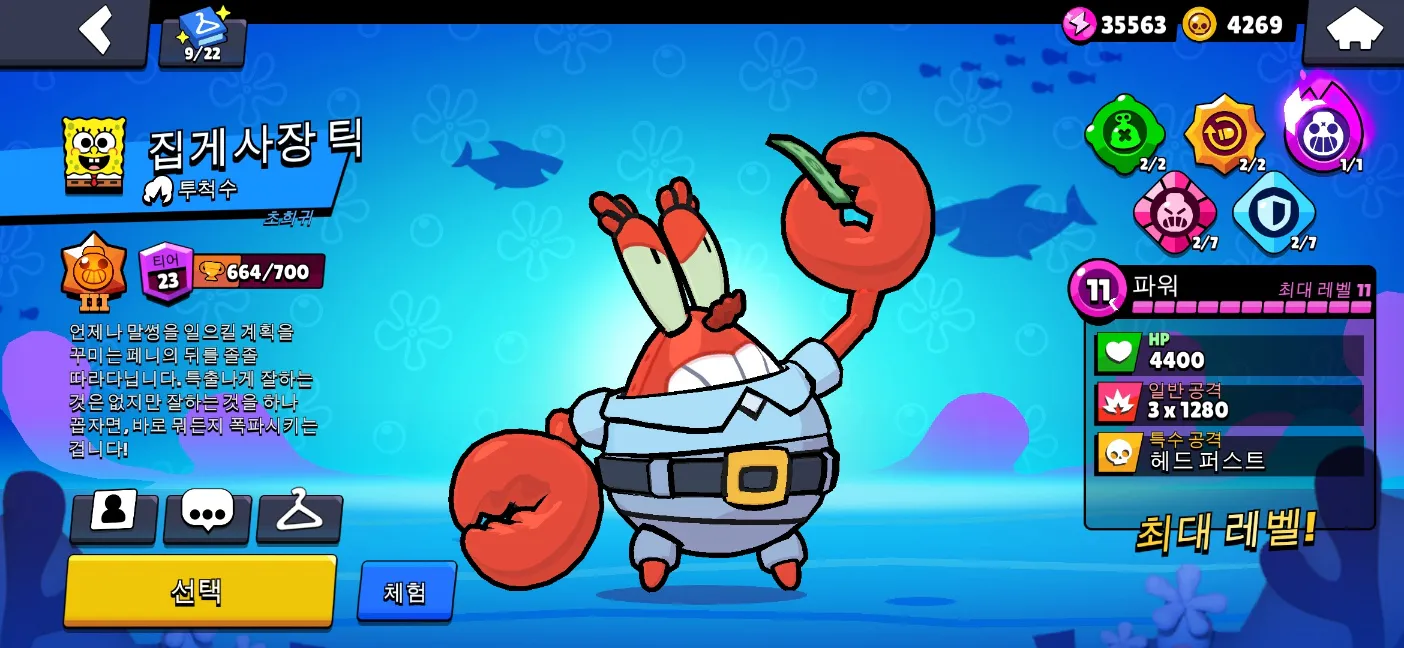 9월 브롤스타즈에서는 스펀지밥 이벤트를 진행하였습니다. 집게리아 상점에서 4종의 스킨을 받을 수 있었고, 브롤 패스에서 1종, 클럽 보상에서 1종, 총 6종의 스킨이 제공되었습니다.